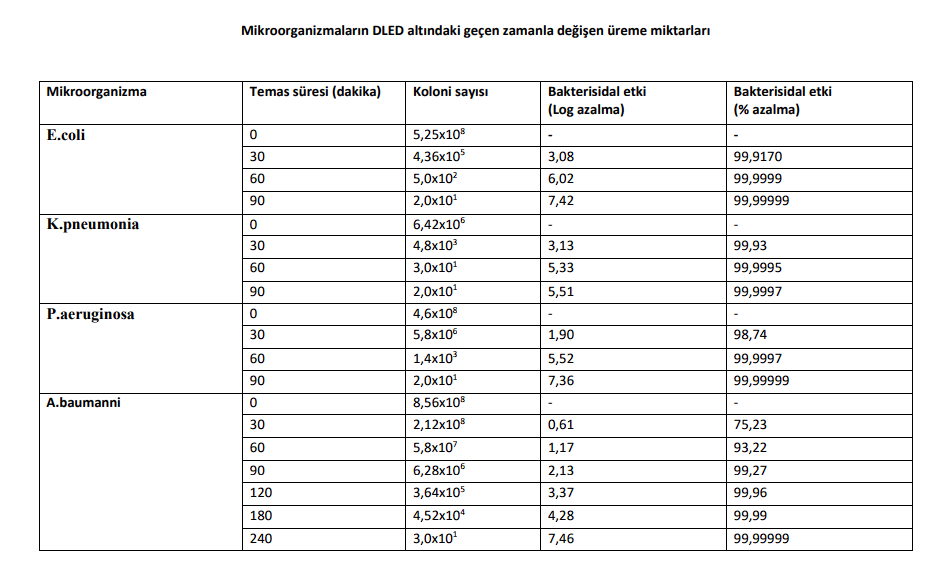 The effectiveness of DLED technology has also been supported by scientific analyses. Microbiological efficacy analyses provide reliable and rapid results on many pathogens, including biofilm-forming bacteria. In this respect, it can be used safely, especially in areas where the risk of contamination is high.